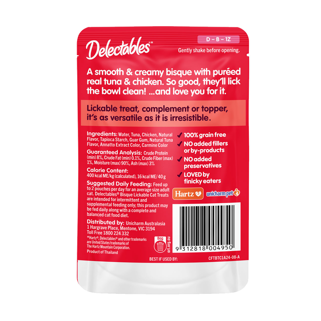 - Combines tender chicken and succulent tuna delectably blended into a smooth and satisfying sauce for a Lickable cat treat so delicious cthey'll lick the bowl clean.